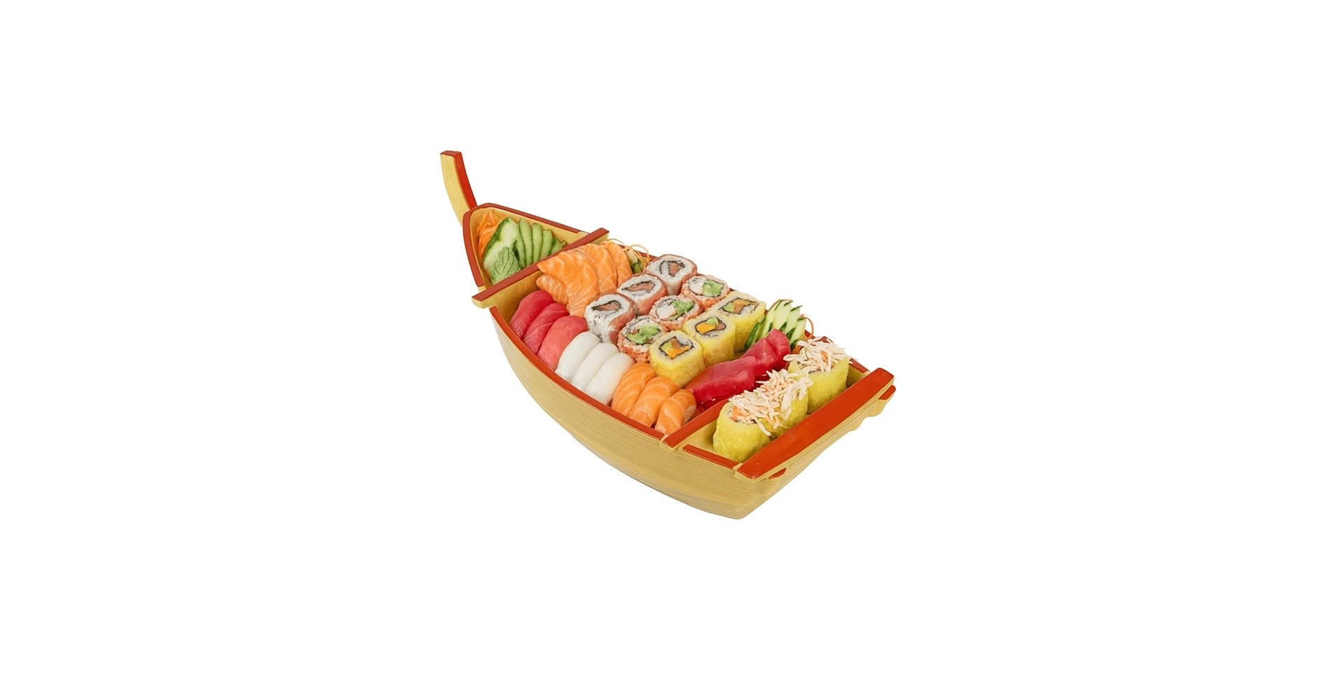 The good news is that you don’t need to be in Japan to try Funamori at home. Boat-shaped serving platters are widely available online. Options range from large, authentic wooden boats to smaller, lightweight plastic versions that are easier for casual use.